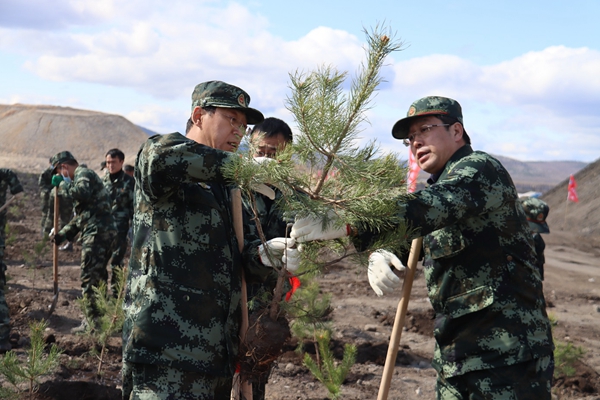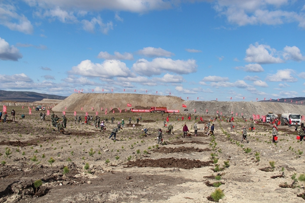 據了解,該礦2022年預計通過生態(tài)環(huán)境修復工程,完成633畝外排土場植樹復綠、增綠補綠目標,其中植樹面積499.35畝。截至目前,整個“義務植樹添新綠共建美麗新礦區(qū)”春季植樹復綠活動歷時35天,累計出動1500多人次,出動機械設備200臺次,新平整排土場216畝,完成歷史堆存外排土場表面草籽綠化949.5畝。植樹復綠面積259.5畝,栽種補植樟子松樹苗5.2萬棵,余下239.85畝的植樹綠化將在今年秋季全面完成。