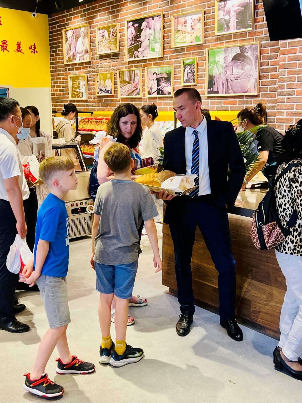 俄羅斯聯(lián)邦駐哈爾濱總領(lǐng)館三等秘書(shū)那雷興與顧客交談