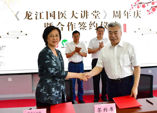 活動(dòng)現(xiàn)場(chǎng),黑龍江日?qǐng)?bào)報(bào)業(yè)集團(tuán)分別與黑龍江省中醫(yī)藥管理局、黑龍江省中醫(yī)藥科學(xué)院進(jìn)行了合作簽約。省中醫(yī)藥管理局黨組書記、局長(zhǎng)張曉峰說:黑龍江日?qǐng)?bào)報(bào)業(yè)集團(tuán)具有廣泛的社會(huì)影響力,我們將以框架協(xié)議的簽署為契機(jī),在中醫(yī)藥文化知識(shí)宣傳普及、中醫(yī)藥產(chǎn)業(yè)宣傳推介方面進(jìn)一步加深合作。省中醫(yī)藥科學(xué)院黨委書記、院長(zhǎng)陳宏在現(xiàn)場(chǎng)說:《龍江國(guó)醫(yī)大講堂》已成為我省中醫(yī)藥文化宣傳戰(zhàn)線上的知名品牌,我們將在多領(lǐng)域開展更深層次、更高水平的合作,為我省中醫(yī)藥事業(yè)跨越式發(fā)展助推加力。