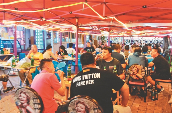 夜幕降臨,冰城街路的大排檔里,人們一邊吃著燒烤海鮮,一邊喝著啤酒,談天說地,不亦樂乎……仲夏六月,在大排檔允許外擺政策的推動下,夏日“夜經濟”越來越火熱,冰城濃濃的“煙火氣”回歸。大排檔既豐富了市民生活,冰城的快樂消費也開始了。