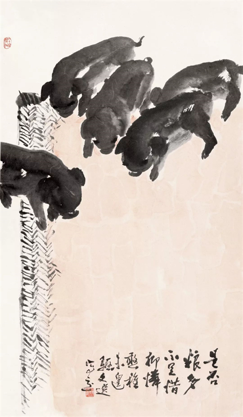 湯文選的人物、山水、花鳥、墨虎等一系列作品,融會(huì)著、貫穿著“三種傳統(tǒng)”。或隱或顯,或化解之,或凝聚之,或熔裁之,或獨(dú)造之。“三種傳統(tǒng)”,可概括為現(xiàn)實(shí)主義在中國畫發(fā)展歷程中的三段式,亦曰交叉出現(xiàn)的不同歷史內(nèi)涵、文化反映的三種藝術(shù)狀態(tài):首先,是古代現(xiàn)實(shí)主義傳統(tǒng)——“外師造化,中得心源”。其二,是“五四”現(xiàn)實(shí)主義傳統(tǒng)——融合西法,崇尚寫實(shí)。其三,是新中國成立后倡導(dǎo)的革命現(xiàn)實(shí)主義傳統(tǒng)。深入火熱斗爭,深入工農(nóng)兵。學(xué)習(xí)延安木刻,學(xué)習(xí)民間年畫,學(xué)習(xí)蘇聯(lián)油畫現(xiàn)實(shí)主義的創(chuàng)作方法(50年代)。其后,“一手伸向生活,一手伸向傳統(tǒng)”(60年代)。在以上“三種傳統(tǒng)”的交匯點(diǎn)上,伸延出湯文選早期和中期的現(xiàn)實(shí)主義創(chuàng)作之路。湯文選中國畫藝術(shù)的現(xiàn)實(shí)主義,其主要特征為積極的入世態(tài)度,強(qiáng)烈的人文主義色彩,個(gè)性、民族性與時(shí)代性的完美統(tǒng)一,以及嚴(yán)肅的歷史使命感。