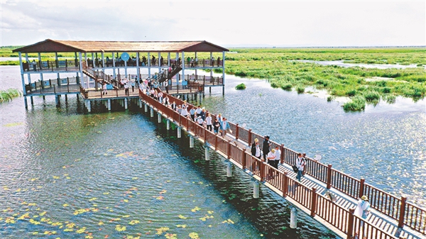 近日,寶清縣七星河國家級自然保護(hù)區(qū)濕地內(nèi)迎來大批游客,一望無際的濕地和葦塘讓游客心曠神怡。游客登上觀鳥臺,俯瞰濕地,夕陽下大批的水鳥在七星河內(nèi)覓食嬉戲,“葦蕩連天碧,水鳥漫云空”,一幅人與自然和諧共生的真實(shí)寫照。