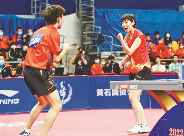 本報(bào)訊(記者楊鐳)9日,在湖北黃石舉行的2022全國(guó)乒乓球錦標(biāo)賽進(jìn)行了混雙決賽的爭(zhēng)奪,黑龍江隊(duì)的奧運(yùn)冠軍王曼昱與廣東名將林高遠(yuǎn)搭檔,在決賽中4比2擊敗去年世乒賽該項(xiàng)目冠軍王楚欽/孫穎莎,將金牌收入囊中。