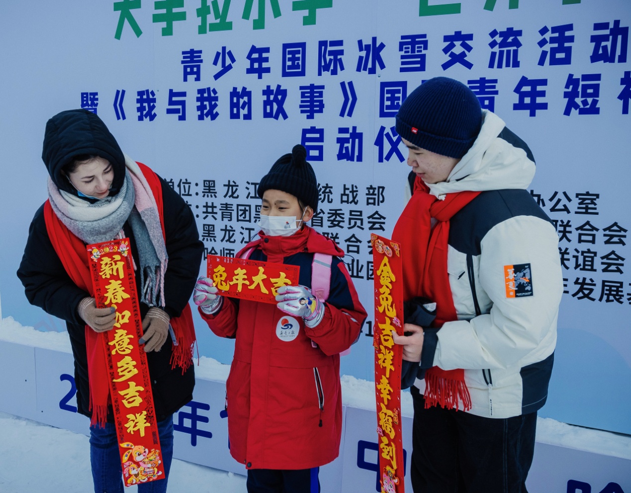 當(dāng)天上午,在雪博會,來自黑龍江大學(xué)的各國留學(xué)生代表與中國青少年結(jié)對互動(dòng),互贈新春禮物,表達(dá)對即將迎來的兔年美好祝福。中外青少年小手拉大手,共游太陽島雪博會,鯉魚躍龍門、圓夢啟程、雪冠博覽等雪雕雪景讓大家流連忘返。世界各國青少年一起雕刻“宇航員”雪雕,送上春聯(lián)祝福語,體驗(yàn)了中國傳統(tǒng)文化和濃濃的年味,表達(dá)了對世界文化共融的美好祝愿。