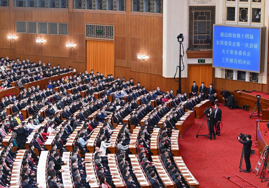 3月11日,中國(guó)人民政治協(xié)商會(huì)議第十四屆全國(guó)委員會(huì)第一次會(huì)議在北京人民大會(huì)堂舉行閉幕會(huì)。