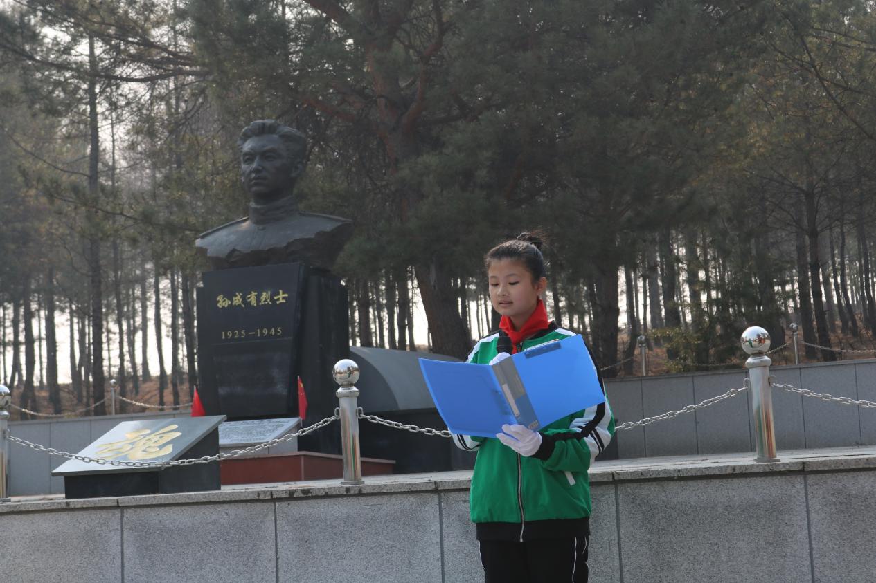 上午九時整,參加祭掃人員在孫成有烈士墓前列隊。全體人員肅立、脫帽,奏唱《中華人民共和國國歌》,溫春中心校學(xué)生代表獻(xiàn)唱《中國少年先鋒隊隊歌》,并介紹孫成有烈士光榮事跡。隨后,全體人員向烈士垂首默哀,表達(dá)對革命先烈的哀思及敬仰。默哀畢,區(qū)人武部代表和溫春中心校少先隊員向烈士紀(jì)念碑敬獻(xiàn)花籃,參加祭掃儀式的全體人員依次瞻仰烈士紀(jì)念碑。