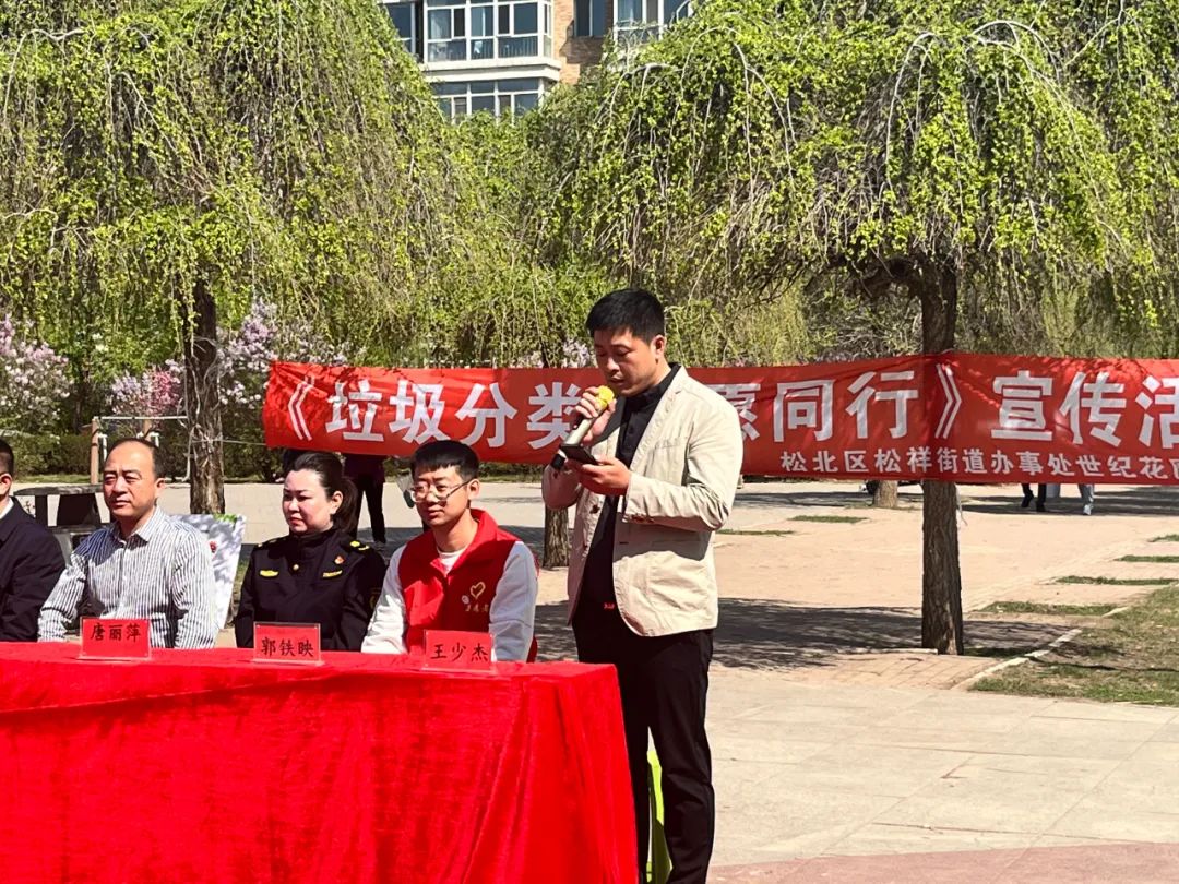 活動(dòng)開場,松北區(qū)松祥街道辦事處世紀(jì)花園社區(qū)王少杰書記作了表態(tài)發(fā)言,作為垃圾分類監(jiān)督員、推廣員,要履行好自己的職責(zé),做好垃圾分類工作。通過公益活動(dòng)宣傳,要把垃圾分好類,為環(huán)境保護(hù)做出自己的貢獻(xiàn)。同時(shí)也呼吁各位居民朋友自覺分類投放垃圾,共同為社區(qū)的環(huán)境貢獻(xiàn)自己的一份力量。