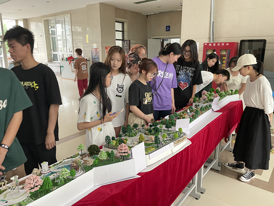 作品展上,一座座精美的校園景觀模型吸引著廣大師生駐足品評。