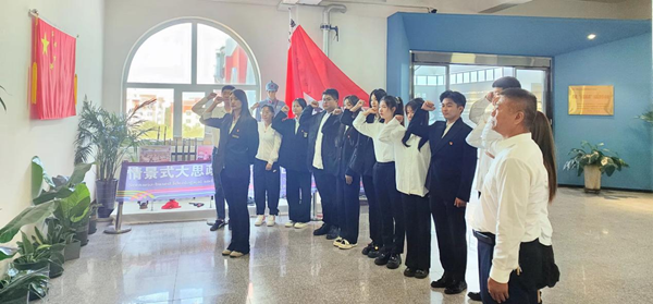 在課程結(jié)束之際,少先隊(duì)員發(fā)出了“勿忘國恥 吾輩自強(qiáng)”的錚錚誓言;黑龍江外國語學(xué)院藝術(shù)系輔導(dǎo)員張博雅帶領(lǐng)在場全體黨員重溫了入黨誓詞。短短的十二句話,道出了中國共產(chǎn)黨的百年奮斗歷程,凝聚著每一名黨員不忘初心、堅(jiān)守理想的信念與力量。面對(duì)黨旗,全體黨員莊嚴(yán)地舉起右拳宣誓,表達(dá)了矢志不渝跟黨走的決心和勇?lián)姑?、不?fù)黨恩的堅(jiān)定信念。