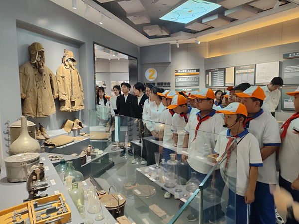 為了緬懷抗戰(zhàn)先烈的光輝業(yè)績,弘揚(yáng)愛國主義精神和民族精神,激發(fā)學(xué)生奮發(fā)成才、報(bào)效祖國的熱情,黑龍江外國語學(xué)院與對(duì)青鎮(zhèn)中心小學(xué)校聯(lián)合舉辦了勿忘國恥 吾輩自強(qiáng)——紀(jì)念“九一八”主題“大思政課”。黑龍江外國語學(xué)院藝術(shù)系2021級(jí)學(xué)生黨員代表、對(duì)青鎮(zhèn)中心小學(xué)38名少先隊(duì)員和黨員教師50余人,在國家級(jí)“大思政課”實(shí)踐教學(xué)基地——黑龍江外國語學(xué)院國際和平資料館共同上了一堂“大思政課”。黑龍江外國語學(xué)院紀(jì)委書記、副校長、國際和平資料館館長焦洪雙博士擔(dān)任課程主講。