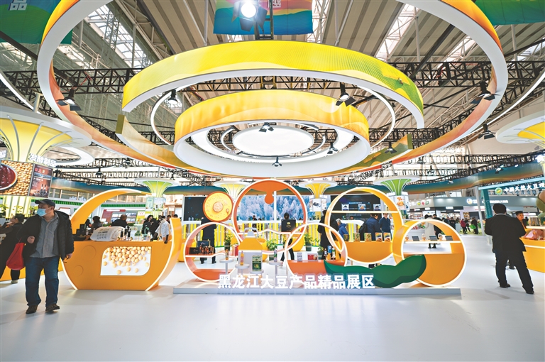 黑龍江大豆產(chǎn)品精品展區(qū)。本報(bào)見習(xí)記者 張春雷攝