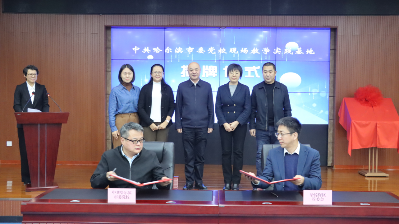 黑龍江經(jīng)濟網(wǎng)訊(記者商祺)12月13日,哈爾濱綜合保稅區(qū)與哈爾濱市委黨校舉行現(xiàn)場教學實踐基地揭牌儀式,哈爾濱市政府副秘書長、兩區(qū)一體化辦公室主任、哈爾濱綜合保稅區(qū)管理委員會主任尹承云與中共哈爾濱市委黨校常務(wù)副校長、市行政學院院長孫蕊共同為現(xiàn)場教學實踐基地揭牌。哈爾濱市委黨校副校長孫昭與哈爾濱綜合保稅區(qū)管理委員會常務(wù)副主任邸凱代表雙方簽署合作協(xié)議。