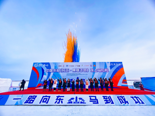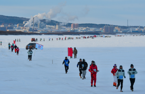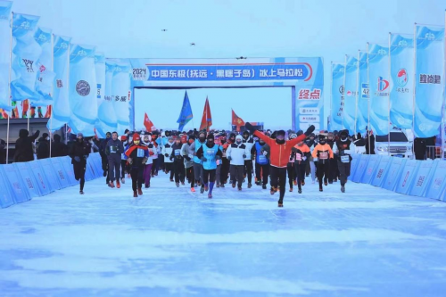 中國(guó)東極(撫遠(yuǎn)·黑瞎子島)冰上馬拉松賽已經(jīng)連續(xù)五屆在撫遠(yuǎn)市舉辦,憑借地域唯一性和極限挑戰(zhàn)性,成為全球五大冰上馬拉松之一,開(kāi)創(chuàng)中國(guó)極限冰雪馬拉松運(yùn)動(dòng)的先河。本屆賽事由黑龍江省體育局、佳木斯市人民政府主辦,省政府黑瞎子島建設(shè)和管理委員會(huì)、撫遠(yuǎn)市人民政府承辦。中國(guó)奧委會(huì)副主席、中田協(xié)名譽(yù)主席段世杰前往比賽開(kāi)幕式鳴槍。賽事設(shè)有全程馬拉松、半程馬拉松、新年歡樂(lè)跑三個(gè)項(xiàng)目。清晨7點(diǎn),撫遠(yuǎn)市的氣溫達(dá)到了零下23.3攝氏度,選手們紛紛帶上防風(fēng)面罩、保暖帽、手套、太陽(yáng)鏡、防滑冰爪等應(yīng)對(duì)極端嚴(yán)寒環(huán)境下的特殊裝備,在全程42.195公里的冰賽道上,徒步穿越冰雪世界,體驗(yàn)當(dāng)?shù)鬲?dú)特冰雪文化和民俗風(fēng)情,品嘗賽道補(bǔ)給站提供的熱氣騰騰的鱘鰉魚(yú)鍋、鮮鯽魚(yú)湯等地方特色補(bǔ)給品,補(bǔ)充能量抵御嚴(yán)寒。