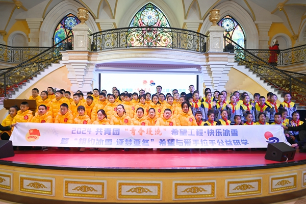 “希望與愛手拉手,相約冰雪逐夢亞冬。哈爾濱,我們來啦!”40名雙鴨山“小黃鴨”是來自雙鴨山地區(qū)的留守兒童、礦工和武警子女、低保戶困境家庭學(xué)生以及少先隊(duì)紅領(lǐng)巾宣講員。開營儀式后,雙鴨山“小黃鴨”們與哈爾濱新朋友,攜手暢游伏爾加莊園。并將在今后的5天中,體驗(yàn)哈爾濱工程大學(xué)校園生活,參觀游玩哈爾濱工程大學(xué)哈軍工紀(jì)念館、北大荒博物館、龍塔、侵華日軍第七三一部隊(duì)罪證陳列館、哈爾濱工業(yè)大學(xué)航天館、索菲亞教堂、太陽島雪博會,欣賞融創(chuàng)冰雪秀等精彩表演,感受“希望工程·快樂冰雪”的魅力。白色的雪覆蓋著黑土地,萌生的是綠色的希望。黑龍江省立足冰雪資源稟賦,“希望工程·快樂冰雪”公益項(xiàng)目于2013年在省內(nèi)希望小學(xué)、鄉(xiāng)村小學(xué)內(nèi)實(shí)施開展,黑龍江籍冬奧冠軍楊揚(yáng)、張會、武大靖等先后助力。“希望工程·快樂冰雪”項(xiàng)目資助鄉(xiāng)村學(xué)校澆筑冰場,為龍江學(xué)子捐贈愛心冰刀,帶領(lǐng)留守兒童赴冰雪大世界、太陽島雪博會等地開展形式多樣的賞冰樂雪活動。充分發(fā)揮黑龍江省冰雪資源優(yōu)勢,不斷鞏固和擴(kuò)大“帶動三億人參與冰雪運(yùn)動”的工作成果,滿足青少年多樣化的體育文化需求,為進(jìn)一步推廣普及群眾性冰雪運(yùn)動助力。值此亞冬會有利契機(jī),希望工程發(fā)起組織“相約冰雪逐夢亞冬”希望與愛手拉手公益研學(xué)活動,是貫徹落實(shí)習(xí)近平總書記寄語希望工程重要精神的生動實(shí)踐,通過公益研學(xué),讓城市青少年與鄉(xiāng)村青少年手拉手、心連心,共同開拓視野,參與社會實(shí)踐,在研學(xué)中收獲知識、友誼,也收獲了希望與愛。
