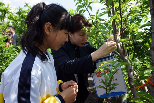 儀式后,與會(huì)領(lǐng)導(dǎo)和孩子們一同參觀青春果園,在“希望”“圓夢(mèng)”“愛(ài)心”等六棵樹(shù)下共同掛上“哈藥小藍(lán)瓶”手工制品。