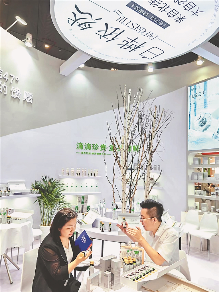 “產(chǎn)品所用的白樺汁原料源自鐵力市,這里處在北緯47°小興安嶺的黑土地上?!焙邶埥陼钥萍加邢薰究偨?jīng)理馬光西介紹,公司充分利用龍江“九珍十八品”資源,由雨曉集團與清華大學深圳科研團隊合作,運用先進技術(shù)開發(fā)提煉出白樺汁精華,為消費者不斷提供囗感獨特的綠色飲品、化妝品。現(xiàn)在企業(yè)庫存清空,鐵力工廠正加班加點生產(chǎn)。本次展會的火爆出圈,讓企業(yè)對白樺汁系列產(chǎn)品走向世界市場更加充滿信心。