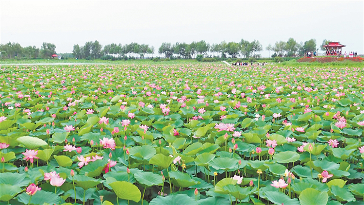 走進(jìn)位于北林區(qū)雙河鎮(zhèn)西南村的正大稻田公園,荷花映日,稻始抽穗,田間不時(shí)有陣陣蛙鳴。藍(lán)天白云之下,綠浪翻滾,游人漫步其間交談著觀光感受,一幅寧?kù)o安適的鄉(xiāng)村田園畫(huà)卷徐徐展開(kāi)?!霸陂e暇的時(shí)候來(lái)到這里散散步,感受戶(hù)外樂(lè)趣和田園風(fēng)景,感覺(jué)身心都很放松、很快樂(lè)。”游客趙忠塔說(shuō)。