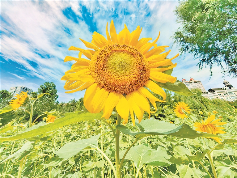 8月14日,哈爾濱市兒童公園內,美麗的向日葵花迎著陽光陸續(xù)綻放。