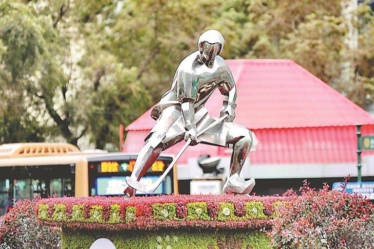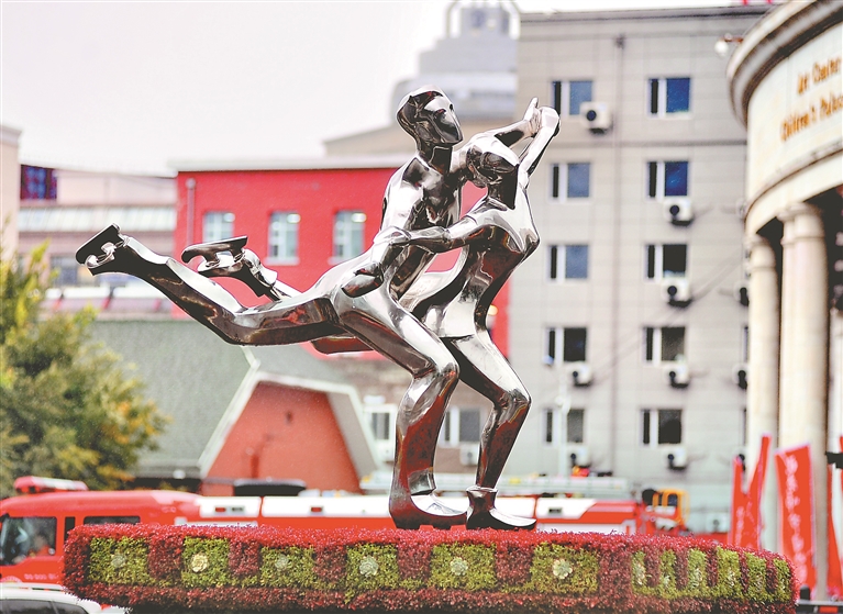 亞冬會(huì)主題雕塑亮相冰城街頭
