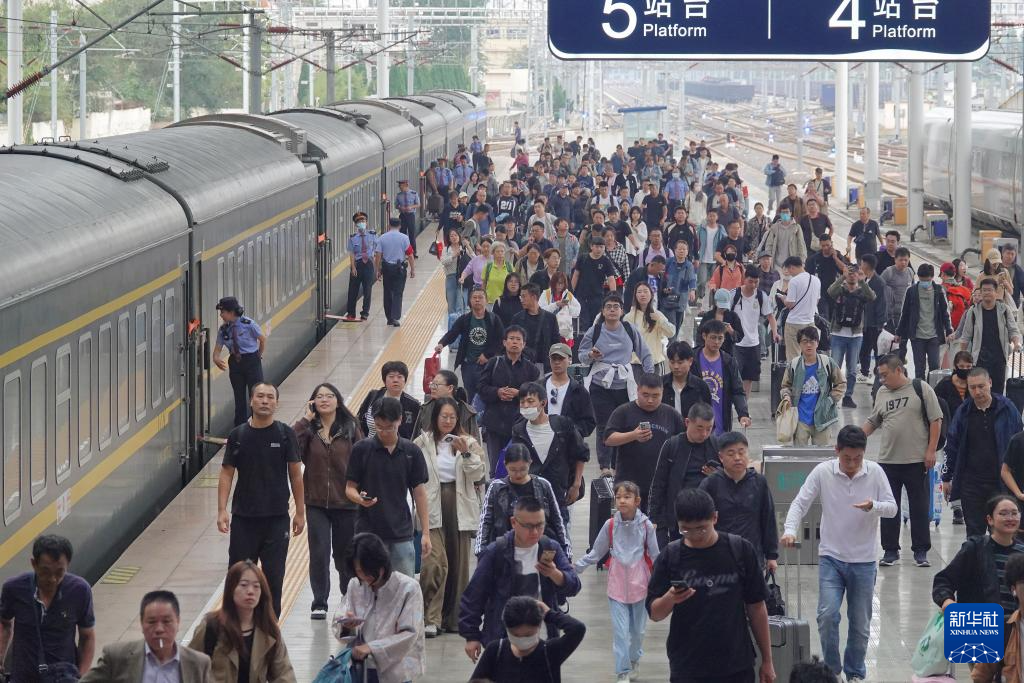9月30日,旅客在南京火車站站臺乘車。新華社發(fā)(楊素平攝)