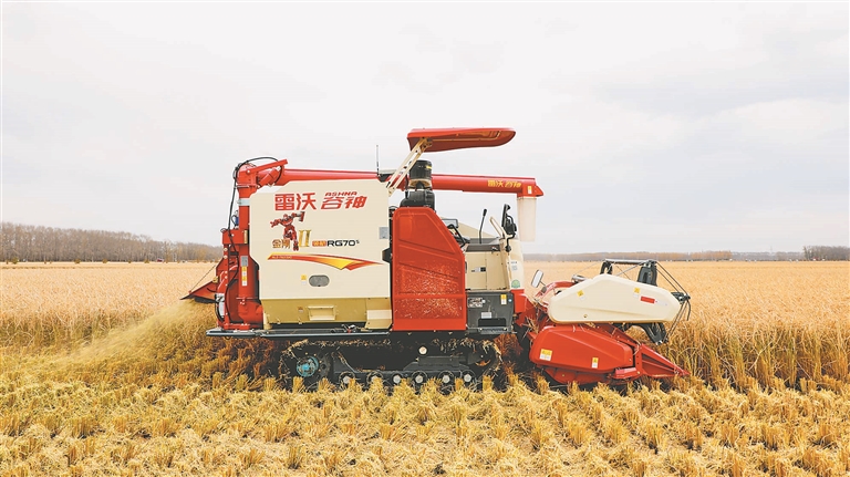無人駕駛的收獲機(jī)進(jìn)行收獲作業(yè)。周立軍攝