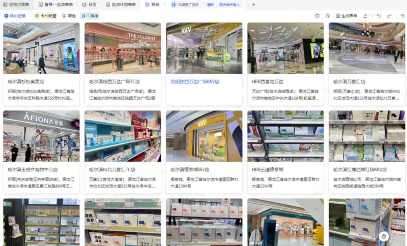 線下巡店工作能最大程度保障各終端貨品銷售質(zhì)量。過去,由于巡店工作涉及外出出差,巡店照片數(shù)據(jù)手機(jī)端無法操作整理匯總,影響問題處理時(shí)效且增加無用工作量?,F(xiàn)在敷爾佳運(yùn)用飛書表單移動(dòng)端操作,隨時(shí)上傳巡店結(jié)果及照片,表格儀表盤視角可以查看數(shù)據(jù)并進(jìn)行一段時(shí)間內(nèi)的環(huán)比、同比分析,基于數(shù)據(jù)分析做任務(wù)下達(dá),一次巡檢從發(fā)現(xiàn)問題到整改問題的全流程都能包攬,對于每位巡檢員來說,每天至少節(jié)省2.5小時(shí)數(shù)據(jù)統(tǒng)計(jì)時(shí)間,同時(shí)更清晰的了解每個(gè)督導(dǎo)的外出工作情況 。此外,查貨溯源沒有系統(tǒng)的數(shù)據(jù)存檔,多個(gè)渠道數(shù)據(jù)無法同步,無數(shù)個(gè)sheet篩選查詢數(shù)據(jù),容易出錯(cuò)。現(xiàn)在,運(yùn)用多維表格協(xié)同操作,多個(gè)維度查看所需數(shù)據(jù),所有查貨情況能被沉淀和實(shí)時(shí)查看。