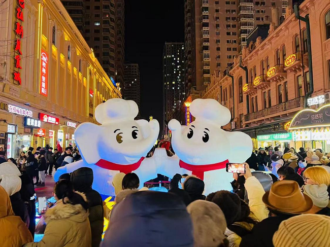 除了“白象”標(biāo)志性小象IP格外吸睛之外,因其與“對(duì)象”諧音的巧妙設(shè)計(jì),也吸引著往來(lái)行人紛紛駐足。雪雕前人潮涌動(dòng),不少市民游客在“對(duì)象”前合影留念。這一創(chuàng)意不僅為游客增添別樣的溫暖與歡樂(lè),也在社交媒體掀起一陣“找對(duì)象”的熱潮。活動(dòng)期間,“對(duì)象雪雕走紅哈爾濱”的話題登上熱搜榜。不少網(wǎng)友調(diào)侃:“這就去哈爾濱找對(duì)象?!币灿腥吮硎?,看完小象雪雕,感覺(jué)爾濱的冬天都充滿了浪漫的氣息。