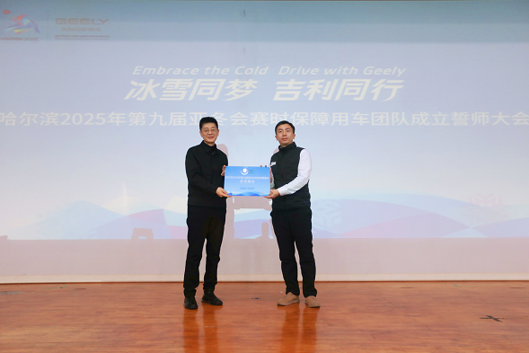 在莊重而熱烈的氛圍中,現(xiàn)場隆重舉行了乘用車保障團隊授旗儀式。駕駛員們整齊列隊,許下了鄭重的承諾:“精準(zhǔn)調(diào)度,安全駕駛,嚴(yán)格守時,真情服務(wù)。高效整備,細(xì)致維護(hù),保障有力,穩(wěn)健運行。全力實現(xiàn):零投訴、零延誤、零事故。用真情護(hù)航,用智慧開道,冰雪同夢,吉利同行?!?/p>
