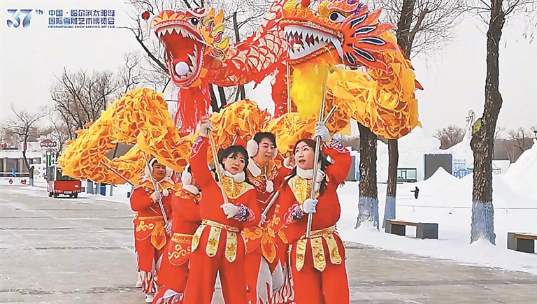 本報訊(記者劉艷)近日,太陽島雪博會上演了一場別開生面的舞龍表演。伴隨著喧天的鑼鼓聲,色彩斑斕的龍身翻騰躍動,激昂鑼鼓奏響新年,點(diǎn)燃新春熾熱氛圍。