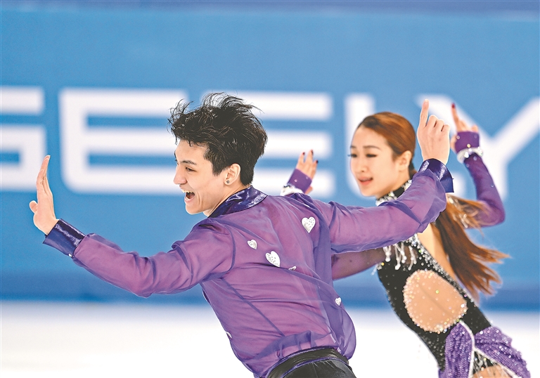 11日下午,在第九屆亞冬會(huì)花樣滑冰冰上舞蹈韻律舞比賽中,首次參加亞冬會(huì)的00后中國(guó)組合任俊霏/邢珈寧以64.29分暫列第二。任俊霏/邢珈寧以放克組合地火風(fēng)樂(lè)隊(duì)的作品混編為伴奏,頗有復(fù)古迪斯科舞風(fēng),兩人配合嫻熟,曲舞合一,優(yōu)美的舞姿和精妙的配合引來(lái)主場(chǎng)觀眾的陣陣掌聲。