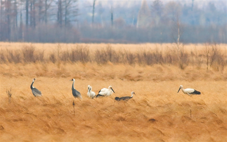 本報訊(陳辰 記者 賈紅路)日前,攝影愛好者在伊春市豐林縣新青國家濕地公園捕捉到令人興奮的一幕:三種“鳥中國寶”——國家一級重點保護野生動物白頭鶴、白枕鶴和東方白鸛同框亮相,上演春日里的生態(tài)“大片”。