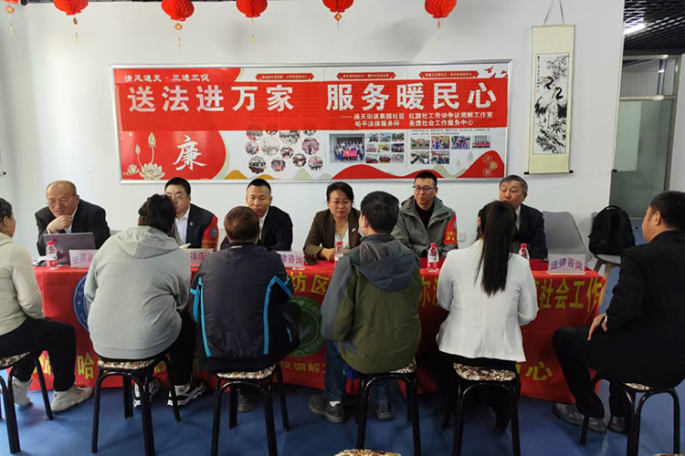 黑龍江經(jīng)濟(jì)網(wǎng)訊(裴桐 單琳琳 劉佳宇 記者魏巍)為提高社區(qū)居民對(duì)法律法規(guī)的知曉率,增強(qiáng)居民法治意識(shí)和法律素養(yǎng),提升依法維權(quán)能力,5月20日,由哈爾濱市香坊區(qū)人力資源和社會(huì)保障局、香坊區(qū)司法局、香坊區(qū)通天街道辦事處指導(dǎo),香坊區(qū)通天街道果園社區(qū)聯(lián)合香坊區(qū)紅旗社工勞動(dòng)爭(zhēng)議調(diào)解工作室、香坊區(qū)哈平法律服務(wù)所和圣德社會(huì)工作服務(wù)中心共同開(kāi)展“與法同行零距離 法治社區(qū)共締造”普法宣傳活動(dòng)。通天街道辦事處主任徐東影、區(qū)人社局副局長(zhǎng)楊軍、區(qū)仲裁院院長(zhǎng)王建松參加了普法講座。