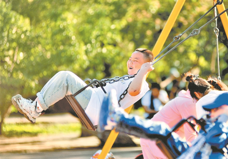 1日,哈爾濱市兒童公園內(nèi),孩子們坐小火車(chē)、滑滑梯、騎自行車(chē)、放小飛機(jī)、蕩秋千、玩蹺蹺板,快樂(lè)地度過(guò)自己的節(jié)日。