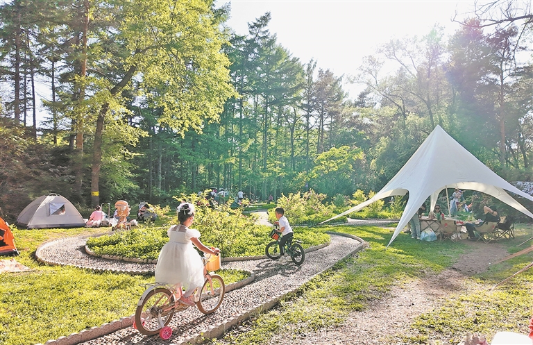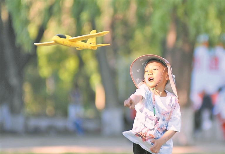 在省森林植物園內(nèi),孩子們?cè)诓萜荷戏棚L(fēng)箏、吹泡泡、追逐嬉戲,盡情享受假日好時(shí)光。