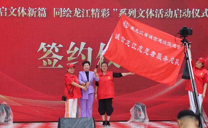 在誠信龍江志愿服務(wù)總隊成立儀式上,張波會長莊重地將象征“奉獻(xiàn)、友愛、互助、進(jìn)步”精神的“誠信龍江志愿者服務(wù)總隊”隊旗,授予首任隊長。這面旗幟的傳遞,標(biāo)志著一支服務(wù)社會、傳播誠信理念的專業(yè)志愿隊伍正式啟航。未來,志愿者們將深度融入系列文體活動的組織、服務(wù)與宣傳,以行動詮釋志愿精神,用熱忱擦亮“誠信龍江”品牌,為活動成功舉辦和誠信文化播撒注入強勁的志愿力量。