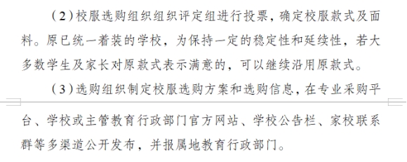 新規(guī)明確要求,學校成立的校服選購組織中,“學生和家長代表占比不得低于80%”,選購前需“征得三分之二以上家長同意”,這意味著家長在供應(yīng)商選擇、款式確定、質(zhì)量驗收等關(guān)鍵環(huán)節(jié)擁有絕對的“投票權(quán)”。更關(guān)鍵的是“不折騰學生和家長”,原已統(tǒng)一著裝的學校,若大多數(shù)學生及家長對原款式表示滿意,可以沿用原款式。選購中需公開需求、公示結(jié)果,選購后需接受家長評價。