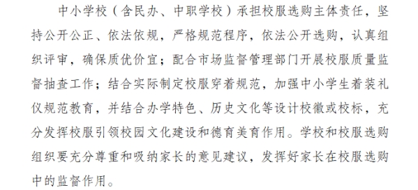 近日,重慶市教委與市場監(jiān)管局聯(lián)合發(fā)布的《關(guān)于進一步加強中小學生校服管理工作的指導意見(征求意見稿)》,以“明確主體責任、強化家長監(jiān)督、鼓勵自主選購”為核心,為校服管理提供了一份兼具針對性與操作性的“重慶方案”。