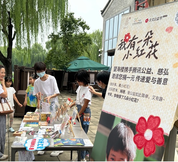 北京慈弘慈善基金會(huì)在后海望海樓舉辦“小紅花公益市集”,通過(guò)義賣來(lái)支持鄉(xiāng)村學(xué)校圖書(shū)角建設(shè),受到市民和游客們的歡迎
