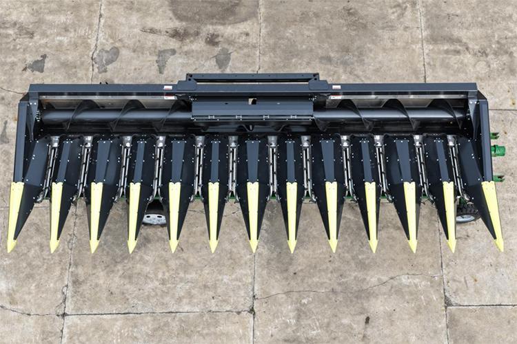 現(xiàn)場會(huì)上,最讓人駐足的是現(xiàn)場展示的意大利卓收割臺, 此次引入的卓收割臺,其自動(dòng)摘穗板每行單元可實(shí)現(xiàn)自動(dòng)開合且?guī)в袦p震功能,能根據(jù)玉米粗細(xì)靈活調(diào)節(jié)間隙,有效解決了其他品牌割臺無法對每行每株精準(zhǔn)適配的問題;同時(shí),收割臺的拉莖輥長度較其他品牌割臺增加 8 公分,讓割臺更貼合地面,在收獲倒伏玉米時(shí)作業(yè)角度更優(yōu),大幅減少 “跳棒” 現(xiàn)象。此外,卓收割臺的拉莖輥及刀片采用螺栓固定設(shè)計(jì),可隨時(shí)調(diào)整位置或更換部件,避免了其他割臺因拉莖輥及刀片為一體式設(shè)計(jì)、損壞后需整體更換的弊端。