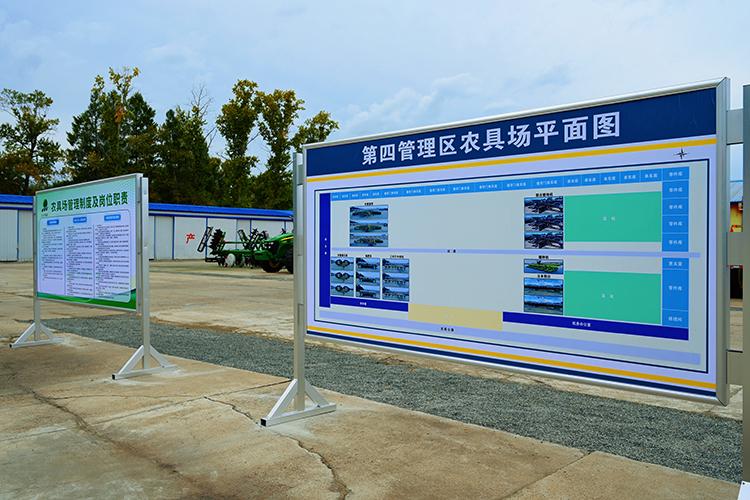 走進(jìn)引龍河農(nóng)場第四管理區(qū)的農(nóng)機(jī)具停放場,首先映入眼簾的是《農(nóng)具場擺放平面圖》,不同顏色的線條清晰標(biāo)注著拖拉機(jī)區(qū)、收獲機(jī)區(qū)、農(nóng)具存放區(qū)的位置。