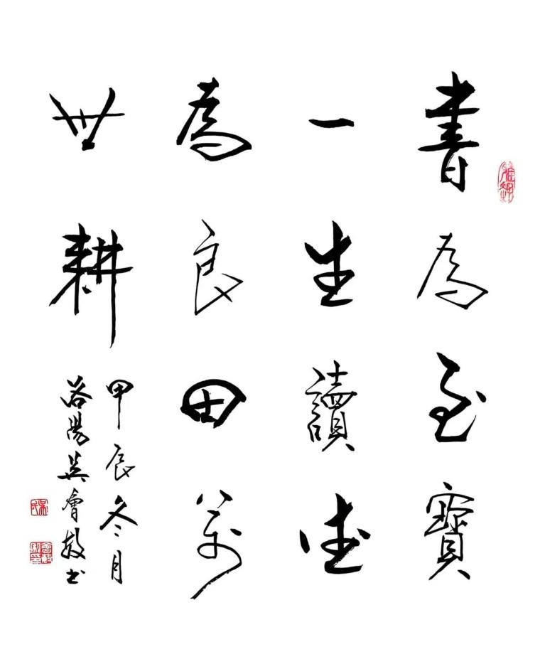 游歷四方,自認(rèn)為也讀過為數(shù)不少的書,見過很多人寫的字,總認(rèn)為真正能稱得上書法家的,必是從書寫、書法到書道。能寫的很多,有法就少些,做到書道的就少之又少。書道,乃通過書法實(shí)踐,抒發(fā)和調(diào)節(jié)作者感情,提高個(gè)人品德素養(yǎng),探索和理解人生意義之道。余以為,吳會敏先生做到書道了。