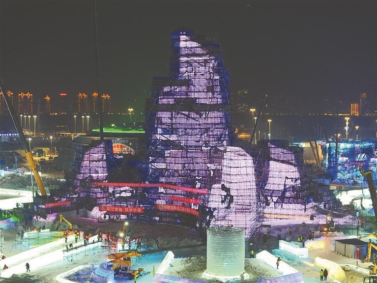 作為目前全球規(guī)模最大的冰雪主題園區(qū),本屆哈爾濱冰雪大世界總用冰量、用雪量雙雙刷新紀(jì)錄。施工現(xiàn)場,上萬名來自龍江安裝集團的建設(shè)者在低溫中晝夜奮戰(zhàn),18個冰建工區(qū)、5個雪建工區(qū)同步推進(jìn),園區(qū)建設(shè)已完成70%。