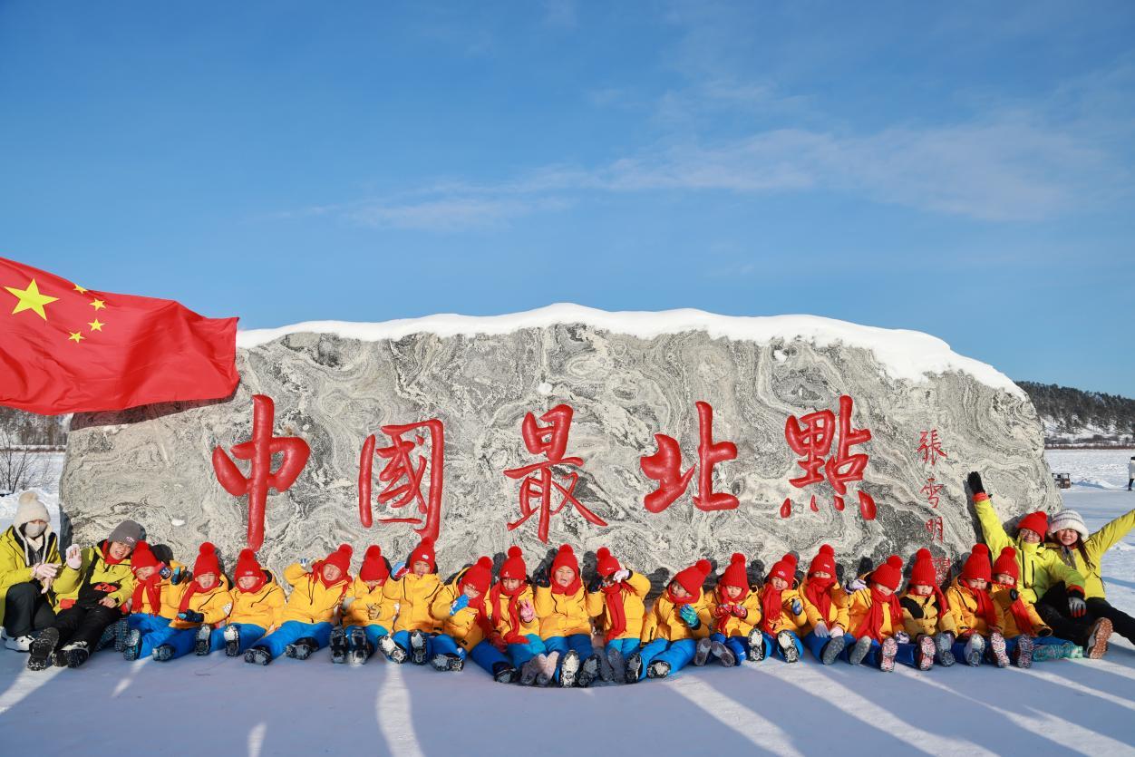登上觀景臺那一刻,孩子們便踮起腳尖指向遠方,擠在欄桿邊,俯瞰龍江在腳下劃出完美的Ω形弧線?!褒埥谝粸澄覀儊砹恕焙⒆觽兊暮奥曊R劃一,隨即爆發(fā)出一陣勝利的歡呼。寒風凜冽,卻吹不散他們的熱情?!斑@是我們第三次帶孩子來這里,每一次都有新收獲?!睅ш犂蠋熣f,龍江第一灣的壯美雪景與獨特地理風貌,不僅讓南方孩子直觀感受到冰雪的魅力,更讓他們在親身實踐中收獲知識與成長。這場早已超越普通的研學之旅,成為連接南北的溫情紐帶,讓冬日嚴寒因這份童真與堅守而格外溫暖。