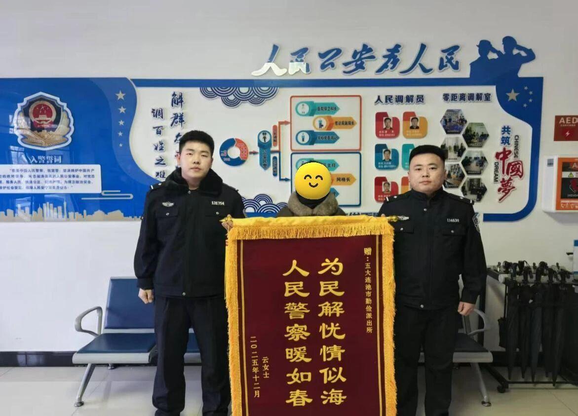 黑龍江經(jīng)濟網(wǎng)訊(李寶 李奕菲 記者粱新立)近日,五大連池市公安局勤儉派出所轄區(qū)群眾云女士來到該所,將一面印有“人民警察暖如春 為民解憂情似?!钡腻\旗送到民警手中,感謝民警幫忙協(xié)調解決一起多年的債務糾紛。