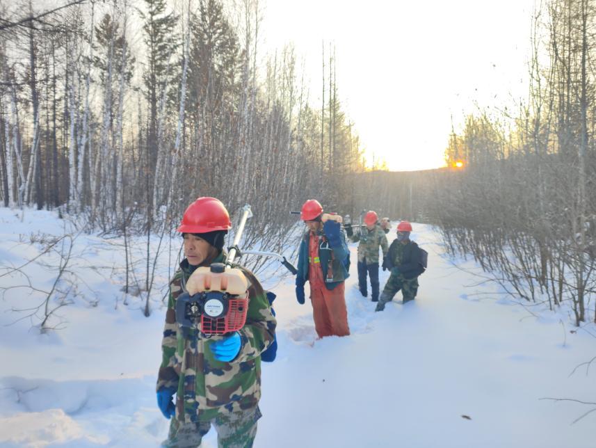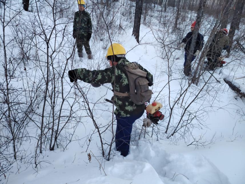 規(guī)范操作不松懈,筑牢安全“防護(hù)墻”。在各營(yíng)林作業(yè)現(xiàn)場(chǎng),寒風(fēng)凜冽卻擋不住職工們的工作熱情。大家嚴(yán)格遵守冬季營(yíng)林作業(yè)規(guī)程,統(tǒng)一佩戴安全帽穿梭在林間,有條不紊地開(kāi)展林木修枝、病腐木清理、林地?fù)嵊裙ぷ?。油鋸手?yán)格執(zhí)行“先檢查、再啟動(dòng)、穩(wěn)操作”的流程,精準(zhǔn)把控作業(yè)角度;撫育隊(duì)員踩著厚雪,手持工具對(duì)林間枯死木、被壓木及對(duì)目的樹(shù)種生長(zhǎng)存在影響的進(jìn)行有序清理、歸堆。從器械檢查到流程落實(shí),每一個(gè)環(huán)節(jié)都嚴(yán)謹(jǐn)規(guī)范,安全帽上的反光條在皚皚白雪中格外醒目,成為林海間一道守護(hù)安全的風(fēng)景線。