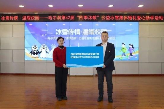 哈爾濱第42屆“四季沐歌”公益冰雪集體婚禮愛心助學行動走進哈爾濱安陽小學。這場以“冰雪傳情·溫暖校園”為主題的公益活動,將冰雪浪漫與助學溫情相結(jié)合,把美好傳遞至校園,為受助學生送去冬日關懷,讓孩子們感受到實實在在的溫暖。