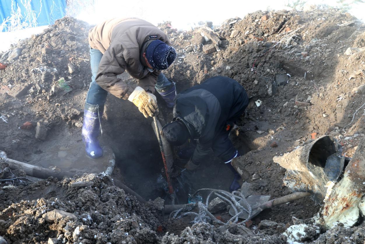 當(dāng)日早8時(shí)許,物業(yè)公司巡線員巡查時(shí)發(fā)現(xiàn)西華路平房區(qū)地面冒熱水,立即上報(bào)并啟動(dòng)搶修預(yù)案。7名搶修人員火速趕赴現(xiàn)場(chǎng),現(xiàn)場(chǎng)分工明確、緊張有序,有的安裝水泵排水,有的接駁應(yīng)急電源,有的揮鎬刨挖凍土層,同時(shí)調(diào)配小型挖溝機(jī)輔助作業(yè)。