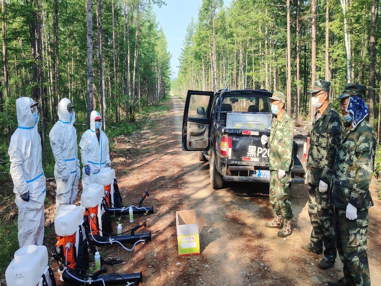 新林林業(yè)局專業(yè)技術(shù)人員在開展病蟲害防治工作(張瑩 攝)