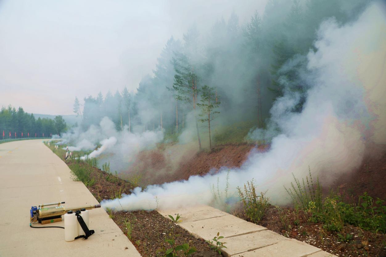 阿木爾林業(yè)局林防站聯(lián)合相關(guān)林場,點(diǎn)燃“百菌清”煙劑,防治“早落病”效果(王力 攝)