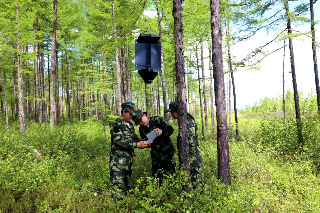 阿木爾林業(yè)局林防站工作人員在監(jiān)測樣地收集小蠹蟲(王力 攝)